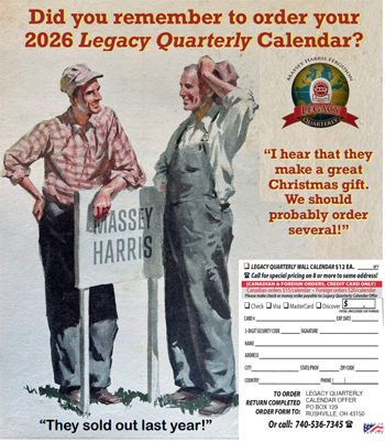 Don’t forget to order your 2026 Legacy Quarterly Calendar. They make a great Christmas gift for all of your Massey friends and collectors. We have managed to keep the price at $12.00, which has been the same for twelve years. How many things can you think of that still cost the same as they did twelve years ago? Calendar sale help to support the magazine, which has only had one price increase in sixteen years. Helping us hold the line on price is the corporate sponsorship of Massey Ferguson AGCO and Great World Promotions. Thank you!